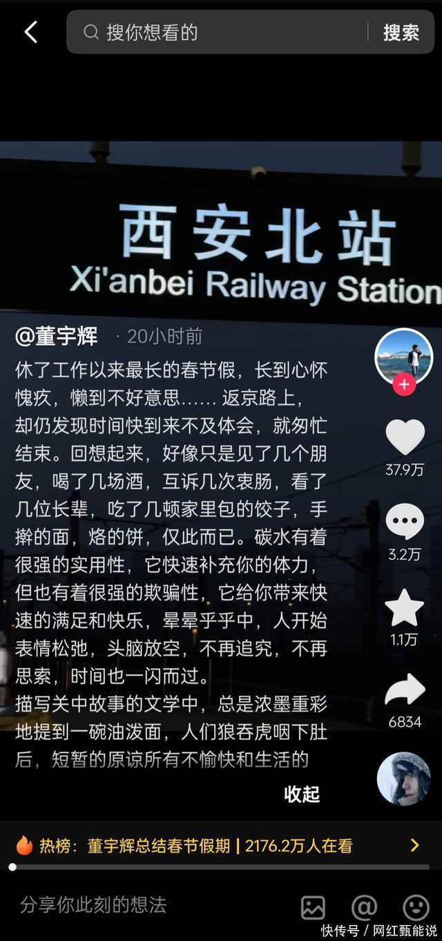 董宇辉回京首播!发千字长文称休息9天心怀愧疚,幽默回应相亲